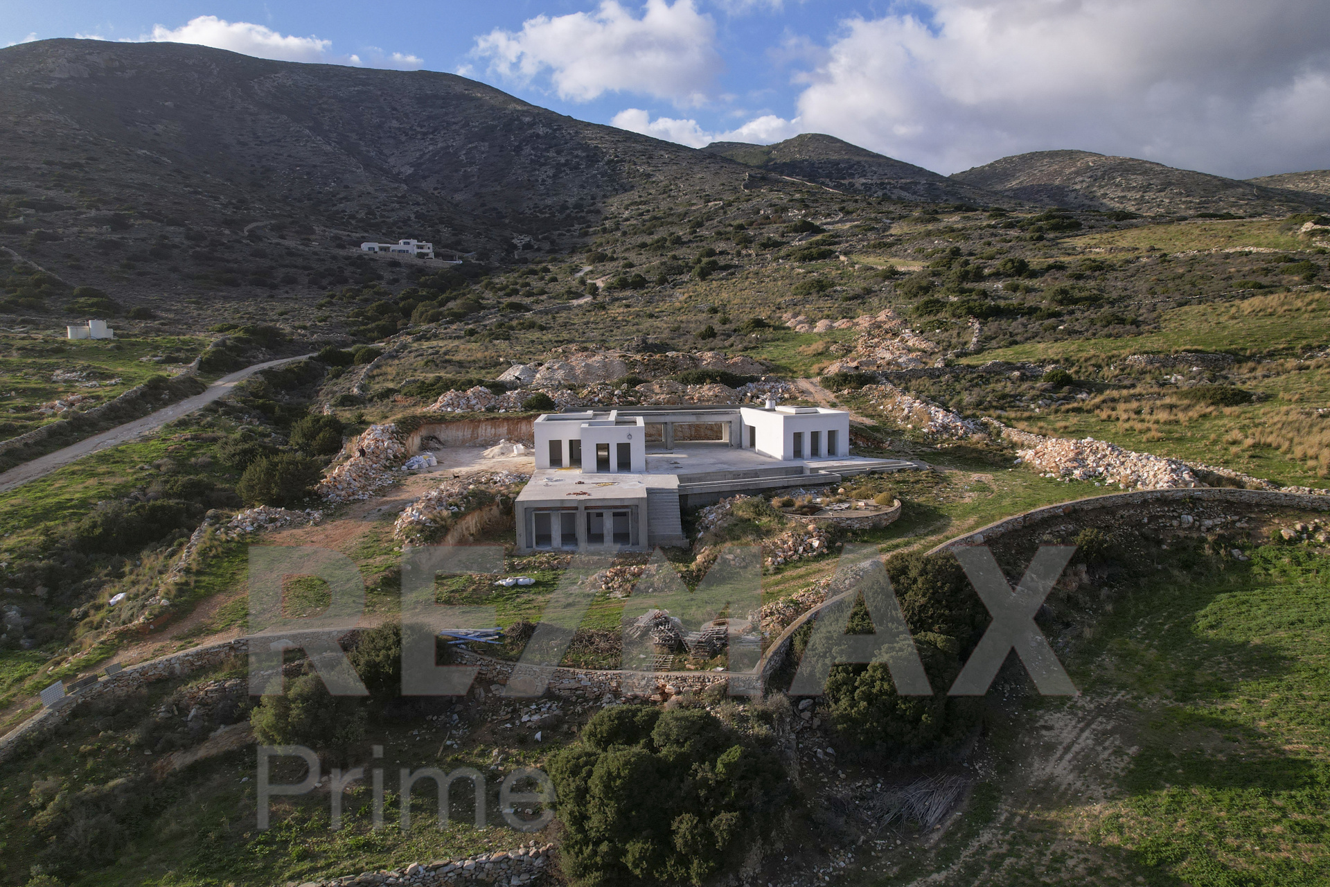 TZANES, PAROS. In an exceptional location on the southeast side of the island, just a few minutes from the famous beach of Golden Beach, a luxurious ground floor house under construction is for sale, one of two houses in an independent complex. The property has a total area of 181.68 sq.m. and is built on a plot of 11,741 sq.m., offering comfort, privacy, and unobstructed views of the Aegean Sea. The residence includes three master bedrooms, an open-plan living room and kitchen, a laundry room with WC, as well as a separate guest house with one master bedroom. It has heat pump heating, air conditioning, rainwater and water tanks, a 45 cm deep water feature/pool, storage room, and parking spaces. The outdoor area is laid out on different levels, with large terraces and shaded areas, ideal for everyday use and entertaining. Access to the villa is easy, via a dirt road. The area is characterized by the tranquility and serenity it offers with its exceptional views of the Aegean Sea and Naxos. It is suitable both as a private holiday home and as a high-end investment. Construction can begin at the design stage, allowing for adjustments according to the buyer's needs. This is a safe choice in a sought-after area of Paros, combining quality construction, location, and future value. The selling price is 1.500.000€ When indicating the plots/residences it is necessary to show your identity card or passport. RE/MAX Prime is a division of Paros Prime Technical/Construction Company, a company with extensive experience in the construction of both luxury and conventional buildings. If you would like to build your dream home, with the help of qualified engineers, with speed and professionalism, call us to make an appointment! RE/MAX PRIME - PAROS PRIME Τηλέφωνο Επικοινωνίας: +30 22840 23137 email: remax.paros@gmail.com, paros.prime@gmail.com Website: https://www.remax-prime.gr/ , https://www.parosprime.gr/ Facebook: https://www.facebook.com/remaxparosprime Instagram: https://www.instagram.com/remaxprime_parosprime/ Linkedin: https://www.linkedin.com/company/remaxprime-paros YouTube: https://www.youtube.com/channel/UCr6CI4U4kDmVyo26G9lRbwQ