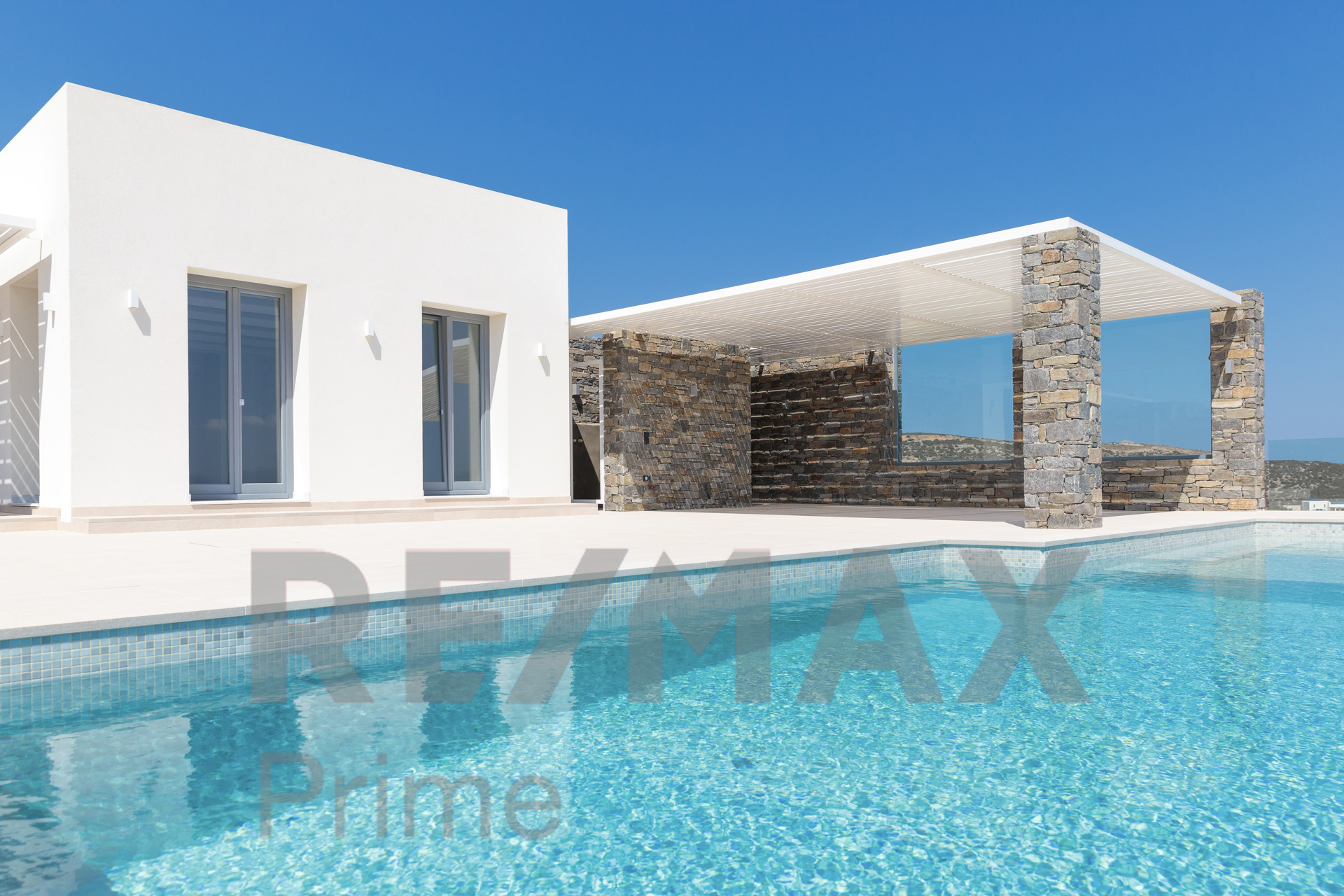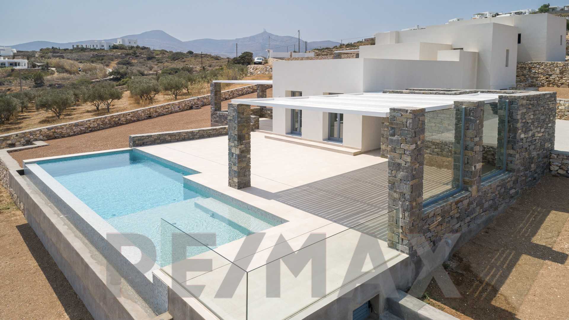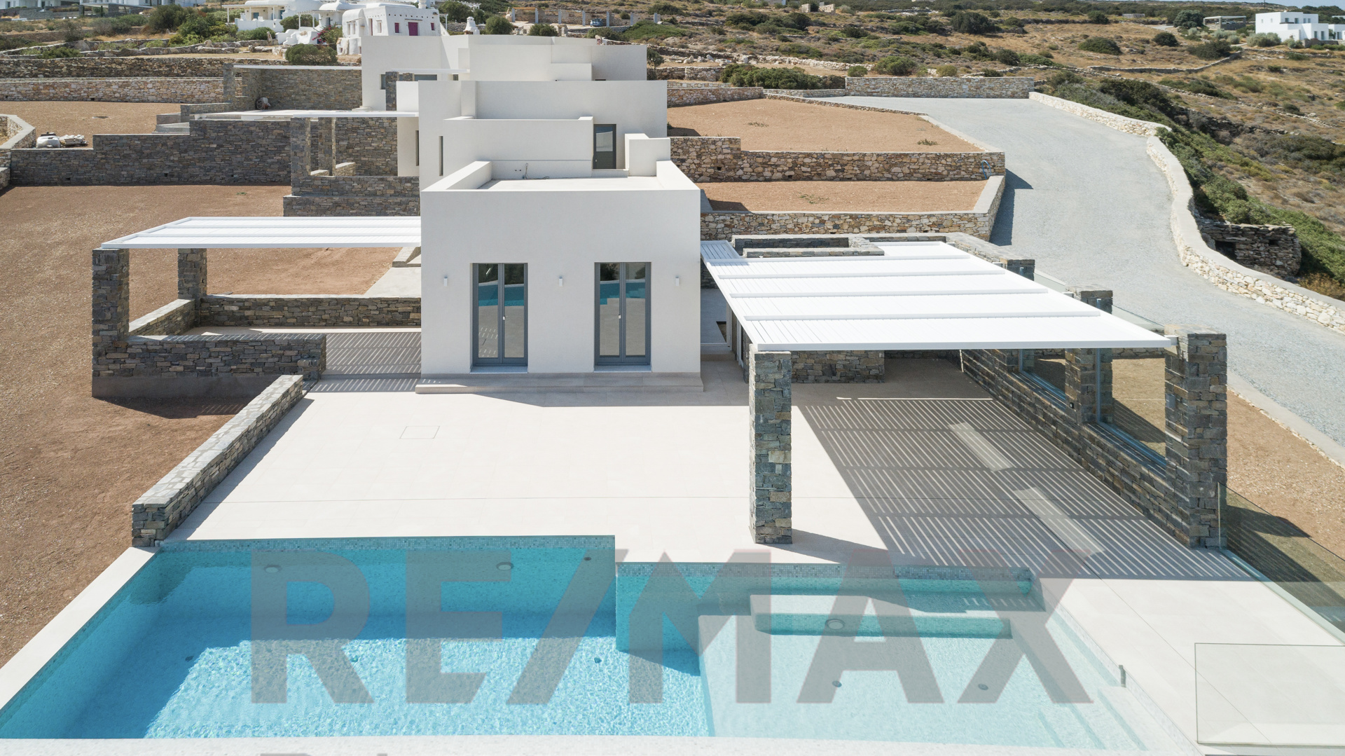 FOR SALE by REMAX Prime, a luxury villa with eco-friendly construction, just ten minutes from picturesque Naoussa and the enchanting beaches of Ambelas and Santa Maria, in the quiet location of Tsirópoula, Kostos, stands this magnificent 233 m² residence, built on a 4,407 m² plot, which harmoniously combines modern luxury with island authenticity. The two-level villa stands out for its minimalist architectural aesthetics and "Passive House" construction philosophy, which ensures top energy efficiency, an ecological footprint, and absolute comfort throughout the year. Interior On the 138.36 m² ground floor, a spacious living room with unobstructed views of the Aegean Sea is bathed in natural light, while the modern kitchen, fully equipped with state-of-the-art appliances, invites you to enjoy moments of culinary delight. Two comfortable bedrooms and two elegant bathrooms complete the level, combining functionality with aesthetic perfection. In the 78.94 m² basement, there are two additional bedrooms, two bathrooms, and a spacious 16.38 m² storage room, offering flexibility and comfort. Outdoor areas The surrounding area is a true oasis: the swimming pool with waterfall (46.74 sq.m.) offers moments of coolness and relaxation, while the BBQ area promises unforgettable moments of entertainment with family and friends. The well-tended garden, overlooking Naxos, exudes tranquility and natural beauty. The plot has a borehole for the pool and watering, as well as an outdoor bathroom for maximum practicality. The Feature That Makes the Difference Beyond the view, privacy, and high quality of life, this residence stands out for its innovative energy philosophy. As a "Passive House," it offers thermal comfort with minimal energy consumption—an investment in the future that combines luxury, economy, and ecology. When indicating the plots of land/houses it is necessary to indicate the police ID or passport. The sale price is €2.150.000 RE/MAX Prime is a division of Paros Prime Engineering/Construction Company, a company with extensive experience in the construction of both luxury and conventional structures. If you would like to build the house of your dreams, with the help of specialized engineers, with speed and professionalism, call us to make an appointment!! RE/MAX PRIME - PAROS PRIME Contact Phone: +30 22840 23137 Email: remax.paros@gmail.com, paros.prime@gmail.com Website: https://www.remax-prime.gr/, https://www.parosprime.gr/ Facebook: https://www.facebook.com/remaxparosprime Instagram: https://www.instagram.com/remaxprime_parosprime/ Linkedin: https://www.linkedin.com/company/remaxprime-paros YouTube: https://www.youtube.com/channel/UCr6CI4U4kDmVyo26G9lRbwQ